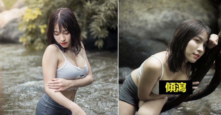 正妹邪惡一身濕… 小背心「遮不住完美」 往前全部倒出來!